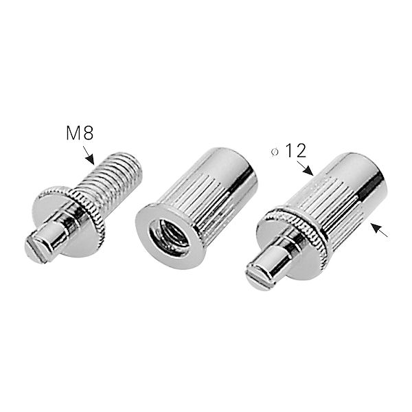 Set of 2 height adjustment thumbwheel posts for mounting various bridges including the Tuneomatic style. Set includes 2 Posts, and also 2 Anchor Bushings for the body of your guitar. Adjusts by hand, or with a flat head screwdriver. These are an M8 Metric Thread, and the bushing requires a 12mm hole.