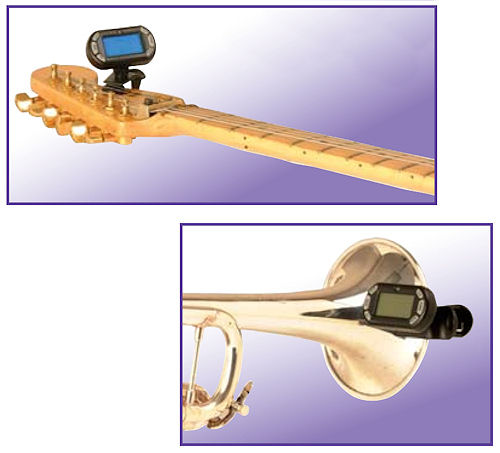 This Tuner has a vibration sensor as well as a Mic (switchable), which allows for pitch detection, making the CTA7700 extremely versatile. You can tune alone in a loud setting using the vibration sensor, or tune with others using the Mic. Features include a Backlit Display, 4 Tuning Modes (Chromatic, Guitar, Bass, Violin), an Audible Chromatic Pitch Pipe, Flat Tuneing Feature, and Calibration from 430-450. This Tuner can clip to most instruments, Band or Orchrastra, as well as Guitar or Bass. A universal swivel joint allows for ample adjustment of the display.